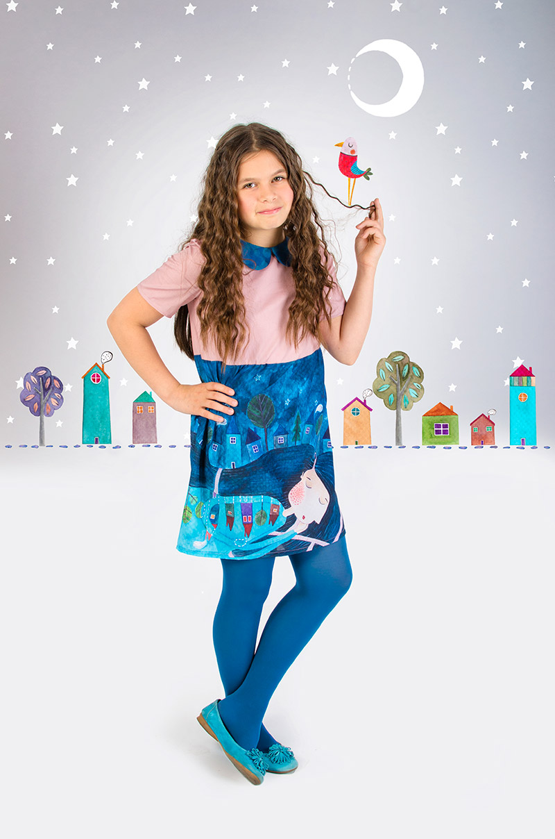 Kürti Andrea a kolozsvári Képzőművészeti és Formatervezői Egyetem divattervezés szakán végezte tanulmányait. Az illusztrátorként és gyerekruha-tervezőként tevékenykedő fiatal művész gyakran ötvözi e két művészeti ág jellemzőit és technikáit, elmondása szerint ugyanis a ruhák és kiegészítők készítése során szintén „rajzol”, csak épp más eszközökkel. Így születnek a „viselhető meséskönyvek”, amelyek a mesékből és a stilizált valóságból merítenek inspirációt. Andrea időnként jelmezeket és ritkán játékokat is készít. Több kötetet illusztrált, továbbá kollekcióit is bemutatták már.