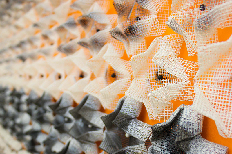 textilművészetben rejlő újabb lehetőségeket keresi, különösen a textúrák, minták és színek játéka foglalkoztatja,